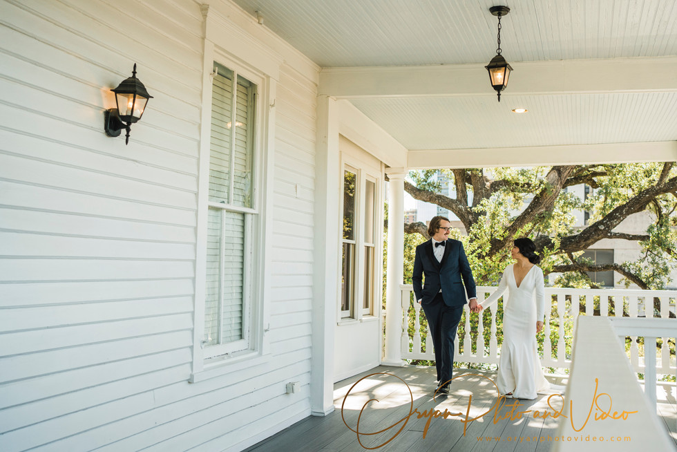 Benjamin and Tiffany’s beautiful wedding at the Allan House was something straight out of a fairytale. Picturesque parlours, lush private grounds, and open-air verandas make The Allan House one of Austin’s most sought-after venues for weddings and receptions. Offering a seamless blend of Victorian charm and modern sophistication, our 1883 mansion and courtyard spaces provide exquisite historic settings for weddings in all styles – from traditional to modern, but always timeless. The couple set the tone with their sophisticated wedding attire. The groom donned a classic suit while the bride wore a white backless gown.